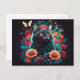 Esta tarjeta es perfecta para cualquier ocasión. Cuenta con un hermoso gato con flores y mariposas alrededor, para los que aman a los gatos.