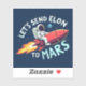 Estamos enviando a Elon hasta el planeta rojo en un cohete vintage. Marte es un viaje de ida, así que esperamos que haya repleto de bocadillos.