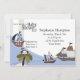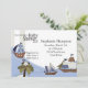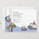 Este diseño tiene tres diseños de barcos con un mono en un árbol tropical en una isla. Puedes usar la parte delantera y trasera para añadir información sobre la ducha para bebés.