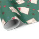 Papel envuelto con Navidades patrón de letras antiguas y sobres atados con cuerda. Cuidada acuarela sin costura con sellos postales sobre un fondo verde oscuro. Hermosos Navidades o patrón de Año Nuevo para envolver y decorar regalos de vacaciones de invierno
