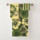 Olive, Khaki y Yellow Colorway. Estas flores de hibisco a mano de tamaño excesivo recuerdan a las flores usadas en los camisetas de aloha vintage de los años cuarenta y cincuenta. En el mismo diseño hay otros objetos de decoración casera y hay rayas de playa que coordiante. El patrón viene en varios colores.