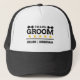 Team Groom | Padrino | Soltero | Gorra Negro Blanco El nombre y el rol del equipo del novio se pueden personalizar fácilmente con los nombres de tu grupo de padrinos, por ejemplo, novio, padrino, padrino de bodas, padre del novio, y otros. Un diseño moderno y elegante de equipo del novio para una ducha de regalos de boda, fiesta de soltero o la mañana de la boda.