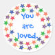Dos círculos de coloridas estrellas rodean la declaración, "Eres amado", impresa en pegatinas. Difunde el amor. Gracias por comprar CherylsArt en Zazzle: http://www.zazzle.com/CherylsArt*/