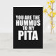 ¡Esta es una tarjeta de amor de hummus en texto blanco y negro!