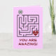 Una tarjeta de San Valentín con un laberinto en la portada. Al final del laberinto se encuentra un corazón rojo que representa tu San Valentín, y estás a la entrada del laberinto. Encuentra el camino a tu San Valentín. El texto de portada dice "Eres asombroso" (el juego de palabras está pensado), pero puedes cambiar este mensaje. El interior de la tarjeta dice "Encontré una manera de llegar a tu corazón - Feliz Día de San Valentín". Esto también es fácil de cambiar. Fácil de personalizar. Utilice el botón Ti Personalizar para personalizar completamente el diseño cambiando el color de fondo y el estilo de fuente según sea necesario.