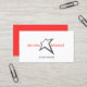 Una estrella gráfica única se convierte en el logotipo de esta tarjeta de visita. Reemplace los campos de nombre por el nombre de su empresa si lo desea. El reverso está en rojo negrita con información de contacto. © 1201AM DESIGNS