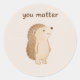 Una pegatina suave y redonda que presenta un simpático erizo y el mensaje alentador "tú importas".