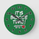 ¡Es el momento de la verdad! divertido reloj de pared con números. Color de fondo verde o personalizado. Añade tu propio texto personalizado o cita humorística. Diseño divertido para los amantes del bocce, jugador, ventilador, etc. reloj Personalizado para casa o casa club.