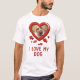 Camiseta graciosa del dueño de un mascota con el dicho "Amo a mi perro", con una foto de tu perro en forma de corazón de amor, y una dispersión de pequeños corazones rojos.