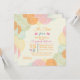 Una bonita invitación con rincones floridos de fantasía en color rosa, verde naranja y azul sobre un fondo de rayas finas. Perfecto para cualquier celebración o ocasión femenina.