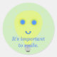 Alentar a sonreír con, es importante sonreír, afirmar pegatinas de bombillas amarillas, con ojos azules y una sonrisa de flecha azul. Gracias por comprar en CherylsArt en Zazzle.