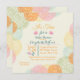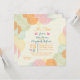 Una invitación hermosa que ofrece los racimos de la esquina de fantasía florece en verde rosado, anaranjado y azul sobre un fondo fino de la raya. Perfeccione para cualquier celebración u ocasión femenina. Al usar para que una fiesta de bienvenida al bebé, colores rosados o azules selectos de la fuente muestre género.