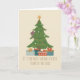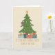 Gato marrón lindo trepando el árbol de Navidad para amantes de los gatos y dueños de felinos. El mensaje es personalizable.