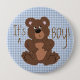 Oso de peluche de arte digital animado y fondo texturizado con azulejos hacen un botón divertido para anunciar IT'S A BOY!! arte digital animado por imágenes kaps