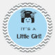 Es un pegatina de chevron azul, gris y blanco chica. anuncio de parto, ducha de bebé.