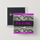 "¡ES UN CHICA!" Botón de rayas rosadas y cebra cal