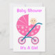 Adorable Baby Girl In a Pink stroller complementa esta invitación a la ducha de bebé, ahorra la fecha con esto: ¡Es un niño Baby Shower! Personalizar de la invitación para adaptarse a sus necesidades e ideas