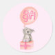Oso cutáneo koala sentado en un regalo sosteniendo un globo diciendo que es un pegatina chica. Ideal para chicas, fiestas de chicas de recién nacido o eventos de parto. Arte y diseño acuarela de Sarah Trett.