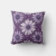 Es un cojín con un patrón floral brillante en un fondo morado.
