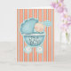 La enhorabuena carda la atracción de un bebé lindo que mira a escondidas hacia fuera de un cochecillo de bebé azul con las palabras "que es un muchacho!"