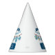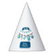 Estos gorras fiestas presentan las palabras "It's A Boy Baby Shower" en una letra impresa única con letras blancas de fondo azul con ropa en una línea en este tema y estilo de bebé. Todos los gorras de papel tienen una cuerda elástica adjunta impresa en colores vivos completos hechos en Estados Unidos tiene un mínimo de 12 pedidos.