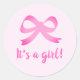 Es un nudo de arco rosado chica pegatinas de ducha y sellos para sobres. Diseño de niñera para recién nacidos chicas y padres nuevos.