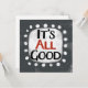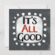 "It's All Good" (Todo bien) es un divertido diseño de texto con una forma de acento blanco rodeado de puntos de textura caprichosos y blancos.