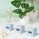 Es una caja de favores de bebé de niño cigüeña