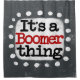 "It's A Boomer Thing" es un lindo diseño de texto en gris con texto en negro y rojo, junto con una forma de acento blanco y puntos caprichosos de textura blanca que lo rodean.
