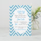Estas agradables invitaciones decoradas con un fondo de chevron azul y un bigote gris serán ideales para tu próxima ducha de bebé.