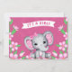Es una invitación a los elefantes Chicas en Baby Shower rosa y blanco. El pequeño elefante está rodeado de flores rosas. Personalizar con los detalles de la ducha para bebés.