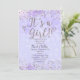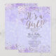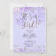 Es una invitación de baby shower de niña púrpura y plata. Personalice para cualquier evento.