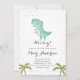 Es una invitación de Baby Shower de un niño dinosaurio