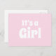 Es una tarjeta postal de invitación de bebé blanca rosa y clara chica