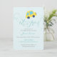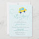 Es un niño ilustrado la invitación a la ducha de bebé de un bus azul