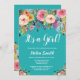 Es una invitación Verde azulada Chica a la Baby Shower Floral.Rosa. Chica Jardín Baby Shower. Flores Florales Acuarelas. Fondo Verde azulado Aqua Turquesa.