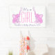 Es un elefante de una ducha de bebé que sopla burbujas en forma de corazón, una bebé que exhibe una pancarta. Personalizar con su propio nombre honorario. Ideal para que un bebé duela. Arte original y diseño de Sarah Trett.