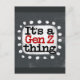 "Es una cosa de la generación Z" es un lindo diseño de texto en gris con texto en negro y rojo, junto con una forma de acento blanco y puntos caprichosos de textura blanca que la rodean.