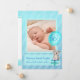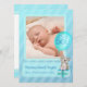 Una tarjeta de invitación azul dulce para bebé con una linda imagen de koala, regalo y globo. Personaliza con tus detalles y una foto especial de tu hijo. Es una excelente manera de anunciar su nueva llegada a la familia y amigos.