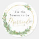 El diseño del sello para sobres boda "Esta temporada se va a casar" de los partidos temáticos presenta una vegetación botánica de color acuático en temporada de vacaciones acentuada por bayas de vacaciones. La tipografía moderna de escritura festiva se combina con la tipografía tradicional. #ChristmasWedding #Boda