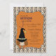 Una adorable bruja, con una gran sonrisa en la cara, es una gran elección para una invitación a la fiesta de Halloween. El panel naranja se coloca sobre un campo de ramas y hojas de otoño.La tarjeta es fácil de personalizar con su redacción, fuente, color de fuente y elección de seis tipos de papel.