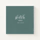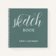 Esbozar el libro con el bloc de notas de nombre. Guión blanco y texto plano en un fondo gris verde.