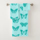 Toalla puesta en bocetos digitales de mariposas variadas adaptadas de ilustraciones vintage y de color digital - turquesa/pavo real sobre un fondo acuático claro