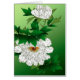 Tarjeta de nota en un ilustracion japonés vintage de flores de peones grandes y blancas, con hojas verdes, sobre un fondo degradado verde suave, realzado digitalmente y colorido