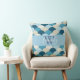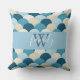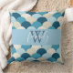 Escalas azules pasteles lanzan almohada con monograma personalizado en letra elegante para una perfecta decoración costera