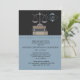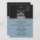 Esta invitación del colegio de abogados/invitación negras y azules ofrece la escala de la justicia encima de tres libros y un afiligranado precioso para un monograma. Un diseño perfecto para una graduación del colegio de abogados o un acontecimiento del bufete de abogados.