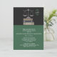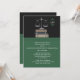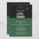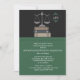 Esta invitación del colegio de abogados/invitación negras y verdes ofrece la escala de la justicia encima de tres libros y un afiligranado precioso para un monograma. Un diseño perfecto para una graduación del colegio de abogados o un acontecimiento del bufete de abogados.