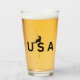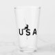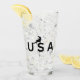 Un escalador de montaña estadounidense usa letras de EE.UU. para descender de una roca abusando. Imagen negra en un fondo blanco