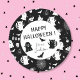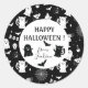 Un niño blanco y negro adorable rodea a los pegatinas de Halloween con el nombre de un niño. Presentan un patrón de frontera , así como un fantasma , un fantasma de gatos y dos murciélagos . Ideal para sellar las bolsas de regalo o para repartirlas como favores de fiesta . © ArianeC Ilustraciones-Todos los derechos reservados