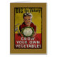 Afiche vintage de una joven sosteniendo una coliflor con sus herramientas de jardinería en el fondo. Imagen angustiada de la Segunda Guerra Mundial.
